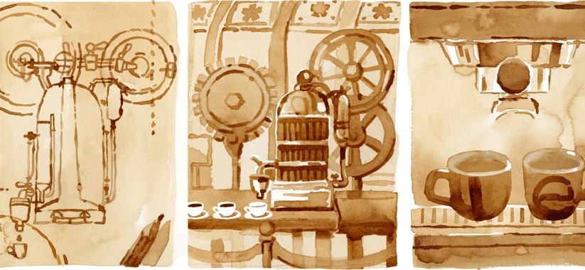 Coffee was formerly the most popular drink in 19th century Italy. Customers had to wait more than five minutes for their drink due to brewing methods. The man who patented the first known espresso machine is Angelo Moriondo. The Doodle of the Day is 171 years old today.
