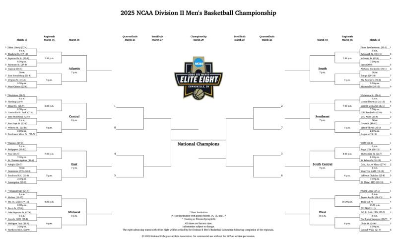 Below is the official 2025 DII Men’s Basketball Tournament bracket, outlining the road to the championship.