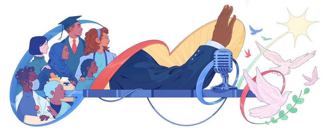 Today’s Doodle honours Dr. Martin Luther King Jr. Day and is illustrated by Olivia Fields, a guest artist from Brooklyn, New York. This federal holiday in the United States honours a day of service and meditation on the life and work of Dr. Martin Luther King Jr., a civil rights activist who campaigned for racial equality and the end of segregation throughout his life.