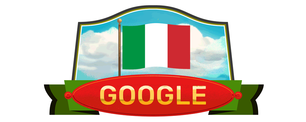 Italian flags, like the one waving in today’s Doodle, are seen all across Italy’s streets, towns, and cities. The most important celebration takes place in Rome, with a major military parade. In addition, the Italian president places a laurel wreath on the Tomb of the Unknown Soldier, which is located beneath the Altare della Patria, to honor the war’s dead soldiers and missing Italians.