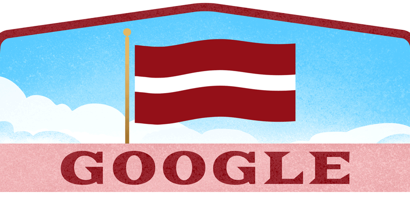 The red and white striped flag of Latvia is shown in today’s Google Doodle. This flag was used by Latvia as early as 1279, even though it wasn’t formally adopted until 1923, making it one of the oldest ones still in use today. The Latvian flag survived despite being outlawed for many years by colonising troops.