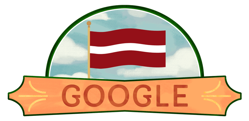 Latvian independence was declared on this day in 1918 within Riga’s National Theatre. On the anniversary of Latvia’s independence, Google’s Doodle features a representation of the country’s red-and-white flag.