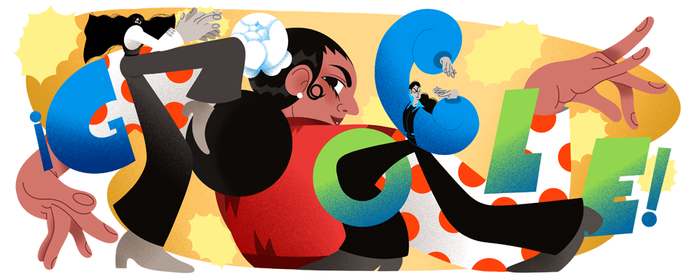 Today’s Doodle honours Spanish Romani dancer Carmen Amaya and was created by Genie Espinoza, a guest artist from Barcelona. Amaya, who is known as one of the best flamenco dancers of all time, exuded personality and unbounded excitement in every move.