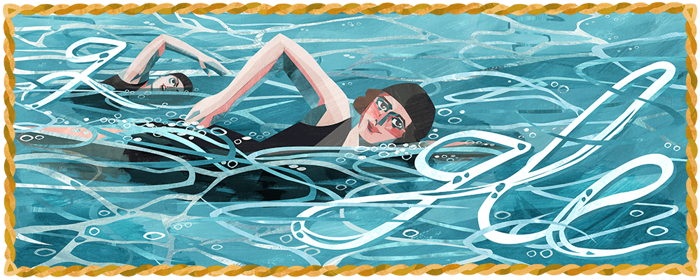 The present Doodle, illustrated by guest artist Alice Lindstrom, celebrates the 130th birthday of Australian athlete Wilhelmina Wylie, the first Australian woman to win a silver medal in Olympic swimming.