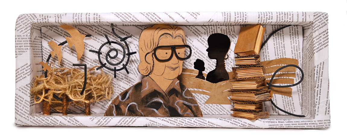 She completely shifted her attention to writing in 1983. She produced a variety of works about Kenyan life, including poems, novels, children’s books, magazine stories, academic essays, and historical pieces. Her best-known novels include Coming to Birth (1986), which won the Sinclair Prize for fiction, Murder in Majengo (1972), The Present Moment (1987), and Murder in Majengo. The mixed-media artwork of today depicts Macgoye with her books, Kenyan scenery, and the ladies who influenced her.