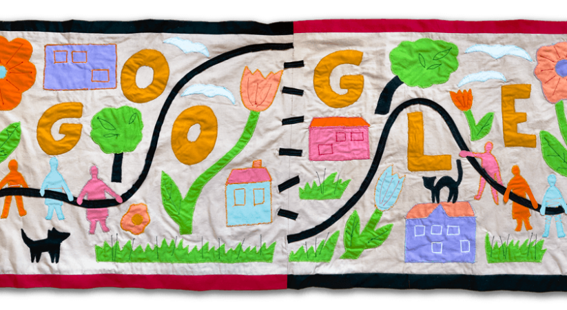 German Unity Day, which honours the historic union of East and West Germany on this day in 1990, is the subject of today’s hand-quilted Doodle.