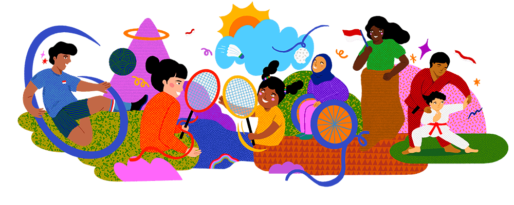 The present Doodle artwork represents the Indonesian community meeting up to play traditional Independence day games, recollecting the significance of collaboration.