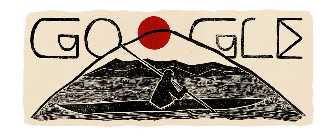 Inuit Nunangat guest artist Natashia Allakariallak’s illustration for this Native American History Month Doodle honors the kayak! Thousands of years ago, these tiny, slender boats were developed for transportation, fishing, and hunting. Since then, kayaking has grown to be a very well-liked pastime and competitive sport.