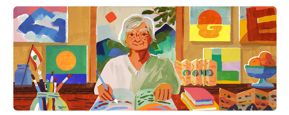 This doodle celebrates the life and work of Lebanese-American writer and artist Etel Adnan. She was best known for her diverse and interdisciplinary work, which spanned both the literary and artistic worlds. On this day in 1955, she held her first solo exhibition in San Rafael, California.