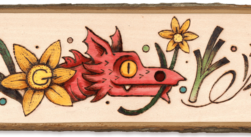 This handcrafted Doodle honors Dydd Gŵyl Dewi Sant, or St. David’s Day in Wales! The tale of Dinas Emrys, according to which two dragons were engaged in combat in a lair below the king’s castle, caused the castle to collapse multiple times, serves as the basis for the artwork. The red dragon eventually won and came to represent Welsh pride. The flag is flying over the country these days.