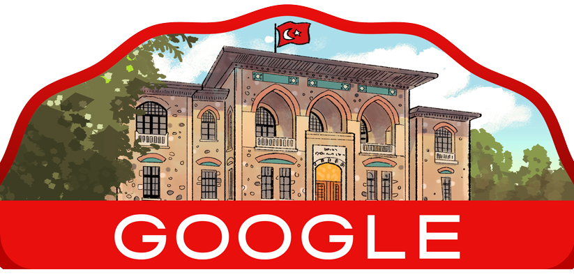 The First Grand National Assembly of Türkiye Building, where the Turkish parliament gathered to declare the country, is depicted in today’s Doodle, which honours Türkiye National Day.