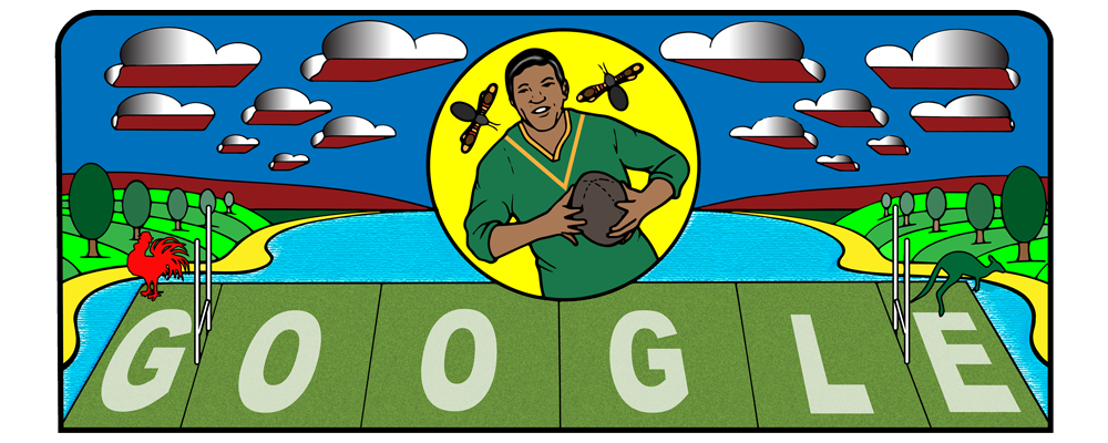 Arthur Beetson is one of the all-time great rugby league players, and he is honoured in this Doodle created by guest artist Blak Douglas, who is based in NSW. Because of his extraordinary ball-handling skills, which altered modern athlete norms and rugby league standards, Beetson became well-known.