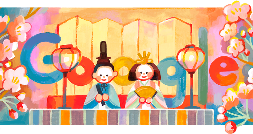 In Japan, Hinamatsuri, also known as the doll festival or girls’ day, is celebrated in this Doodle. Ornate dolls are dedicated and displayed annually in Japanese communities to commemorate the health and happiness of young girls.
