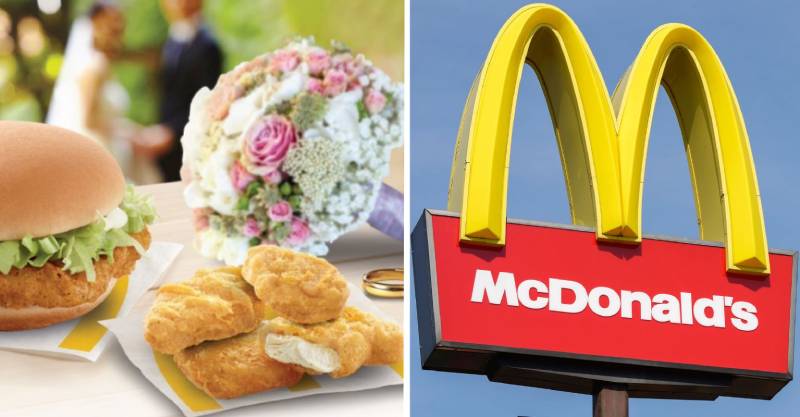 Brides and grooms can purchase a McDonald’s wedding package for approximately $230, which includes 100 orders of four-piece Chicken McNuggets and 100 Chicken Burgers.