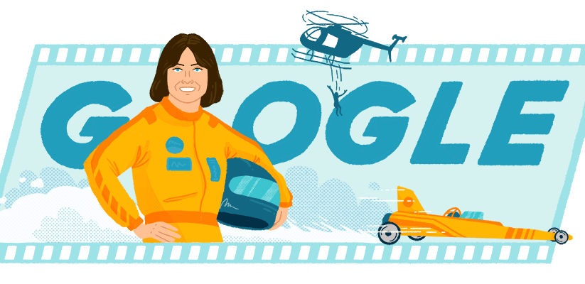 Meeya Tjiang, a deaf guest artist based in Washington, DC, created today’s Doodle to commemorate Kitty O’Neil’s 77th birthday. O’Neil was once dubbed “the fastest woman in the world.” Kitty was a famous American daredevil, rocket-powered vehicle driver, stunt performer, and deaf child.