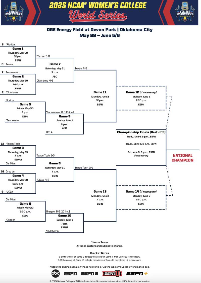 All of the details of the 2025 NCAA DI softball tournament, including the schedule, bracket, and results, are provided below.