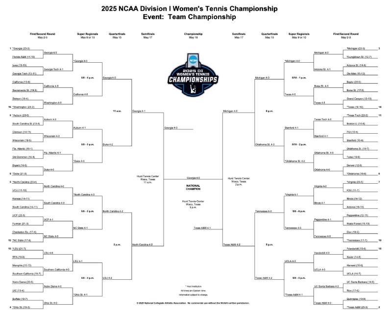 The 2025 NCAA DI Women’s Tennis Championship featured 64 teams, with Georgia entering as the No. 1 seed. The tournament concluded with the Bulldogs’ triumphant victory, marking a memorable season for the program.