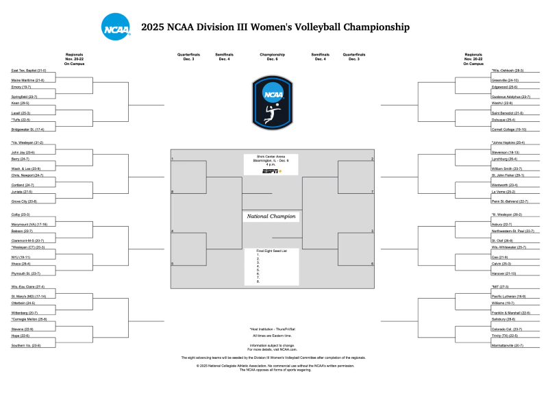 - NCAA DIII Women’s Volleyball 2025: Updated Bracket, Live Results & Schedule - December 5, 2025