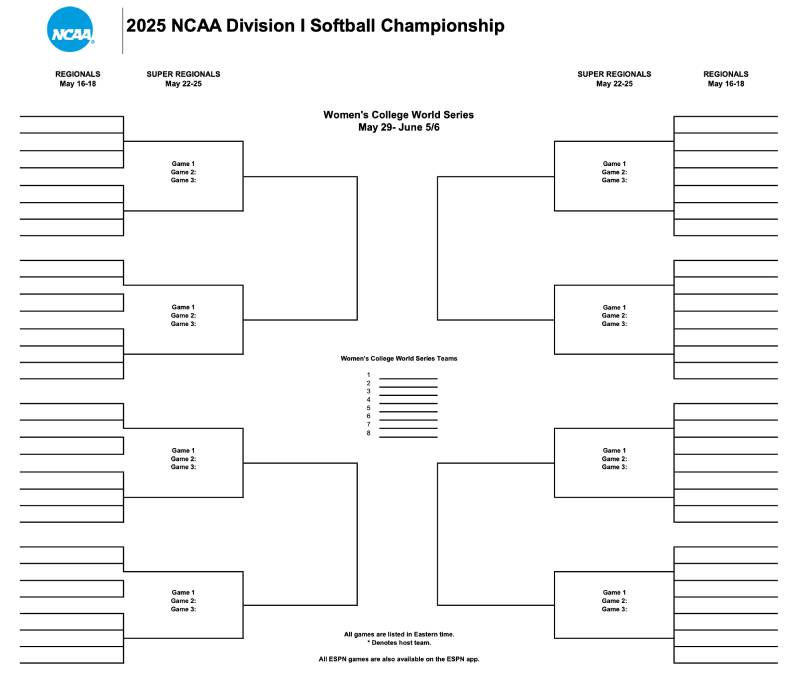 Bracket for the 2025 NCAA DI Softball Tournament-