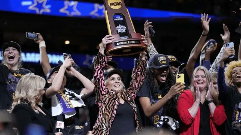 LSU’s victory was celebrated by a crowd of 19,482 people; Over 350,000 people have attended the women’s March Madness, a record for the event, according to the NCAA.