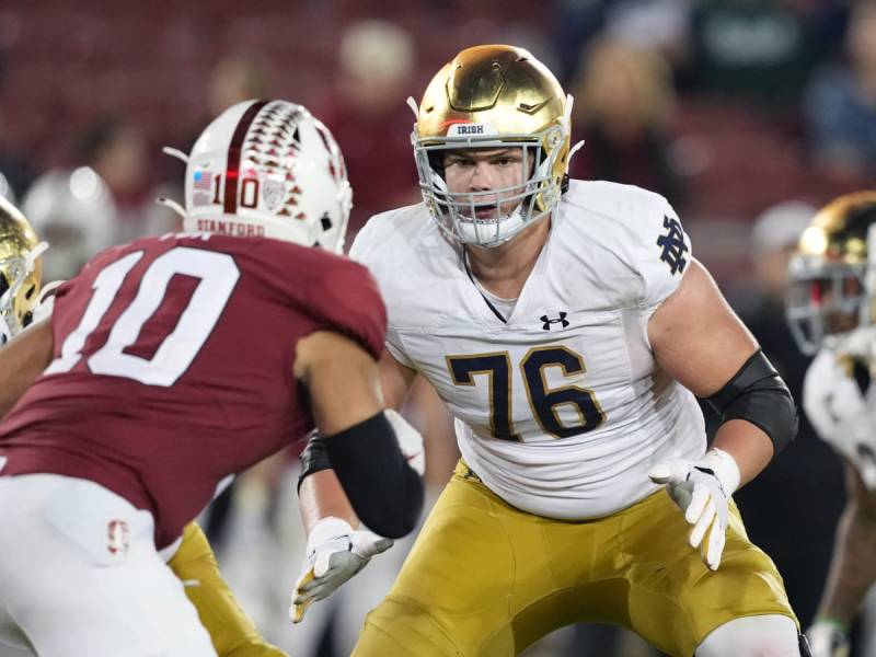 Joe Alt is the kind of pass-protecting left tackle that many NFL teams look for in the annual NFL Draft. Alt is the most seasoned pass-blocking player in this draft class, making it one of the most valuable positions on any team. Less than half of a pressure per game, or only 16 total pressures, were allowed by him in 33 career starts for the Notre Dame Fighting Irish.