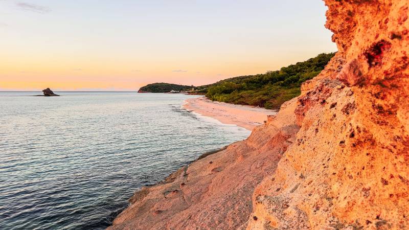 Pink Sand Beach on Harbour Island in the Bahamas is considered the gold standard of pink sand beaches. This 5.8-mile-long beach’s delicate pastel pink hues come from the red and pink shells of microscopic marine organisms called foraminifera. The soft, powdery sand texture and clear turquoise waters make it the perfect spot for sunbathing, swimming and snorkeling. Pink Sand Beach is a must-visit for beach lovers who enjoy the tranquil atmosphere and breathtaking views.
