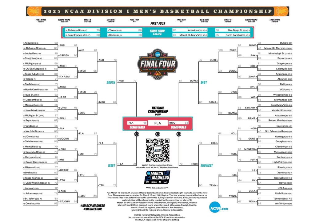 2025 NCAA men’s tournament bracket