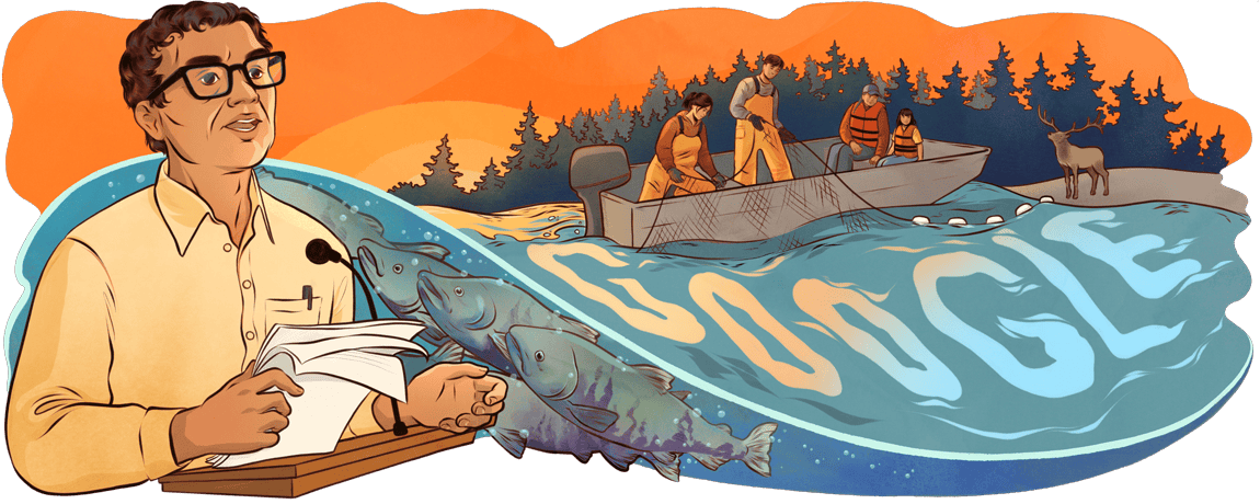 This doodle celebrates the 81st birthday of Hank Adams, a Native American rights activist known as a successful strategist, tactician, and negotiator. Starting in 1960, he helped resolve several important disputes between Native Americans and state and federal officials.
